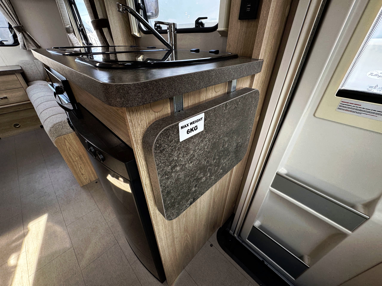 The layout features a bright and inviting rear side settee lounge, providing a comfortable living area that easily converts into a sleeping space, along with a well-equipped kitchen and washroom—creating a practical and enjoyable setup for both short breaks and longer trips.